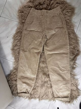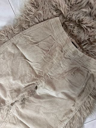 Pantaloni in velluto a coste color beige, perfetti per le bambine. - Tessuto morbido e caldo. - Vita alta con passanti per cintura. - Chiusura con bottone e zip. - Tasche laterali. - Fondo gamba risvoltato.