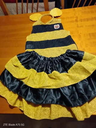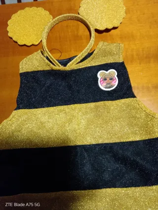 Bellissimo vestito lol - Tessuto glitterato oro e nero a righe. - Include cerchietto con antenne. - Gonna a balze con dettagli glitterati.
