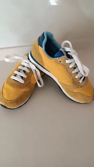 Sneakers Sun 68 per bambino, modello sportivo. - Colore giallo vivace. - Dettagli in camoscio marrone. - Inserti blu. - Chiusura con lacci bianchi.