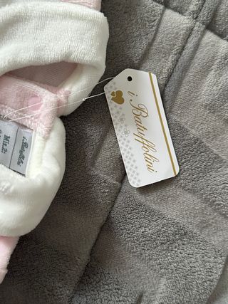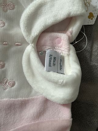 Morbida tutina per neonato, perfetta per i primi mesi. Realizzata in soffice tessuto bianco e rosa, con dettagli curati. - Marchio: i Battufolini - Taglia: 2 mesi - Materiale: Tessuto morbido