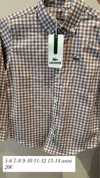 Camicia a quadri Lacoste per bambino, perfetta per ogni occasione. Il capo è realizzato in cotone leggero. - Fantasia a quadri marrone e bianca. - Logo Lacoste ricamato sul petto. - Chiusura con bottoni. - Taglia: 5-6, 7-8, 9-10, 11-12, 13-14 anni.