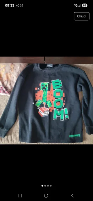 Bellissima felpa per bambini con grafica a tema Minecraft. Il design presenta il personaggio Creeper e la scritta BOOM!. - Grafica Minecraft Creeper e BOOM! - Colore nero - Usata pochissimo