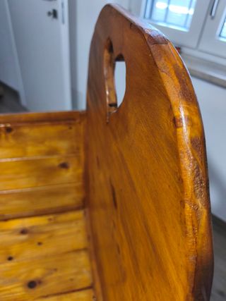 Culla in legno massello, ideale per arredare con un tocco rustico. - Struttura in legno naturale. - Design classico con schienale a cuore. Riproduzione di culla fine '800, leggerissima, intagliata ed assemblata da artigiano del legno interamente ad incastri, senza chiodi né parti metalliche di giunzioni, sistema dondolante anti-ribaltamento. Mai utilizzata, vendesi per poco spazio in casa. Dimensioni: 95x60 cm, H 90 cm Ritiro a carico dell' acquirente.