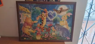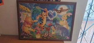 Bellissimo quadro con i personaggi di Winnie the Pooh e i suoi amici. - Raffigurazione di Winnie, Tigro, Pimpi, Ih-Oh, Coniglio e Uffa. - Ambientazione notturna con luna piena. - Cornice in legno scuro.