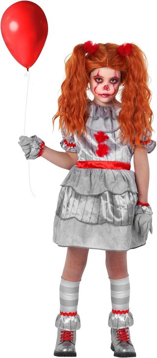 Morph Costume Clown Bambina - Vestito Pagliaccio per Halloween, Horror, Bambola Assassina, Festa e Carnevale Bambina No parrucca No scarpe Taglia XL BAMBINI, VEDI FOTO 2 Questo costume da clown include un abito a sbuffo con tessuto stampato invecchiato e finiture rosse, guanti con bordo volant e scaldamuscoli a righe abbinati