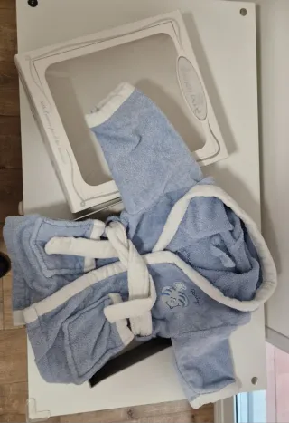 Morbido accappatoio in spugna marca Teneri bebè per neonato, taglia 12/18 mesi. Presenta un simpatico disegno ricamato. - Materiale: spugna - Taglia: 12/18 mesi - Colore: azzurro - Dettagli ricamati