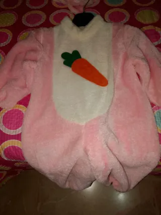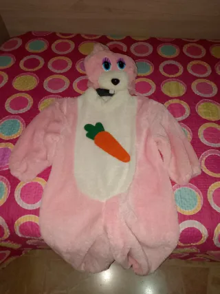 Vestito da coniglietta rosa per bambina, taglia 2 anni. Perfetto per feste a tema o carnevale. - Morbido tessuto peluche. - Dettaglio carota applicata sul davanti. - Cappuccio con orecchie da coniglio. - Imbottitura per un maggiore volume.
