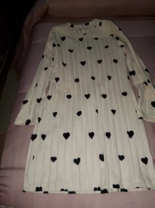 Vestitino per bambina con fantasia a cuori neri. - Maniche lunghe. - Tessuto a costine. - Girocollo.