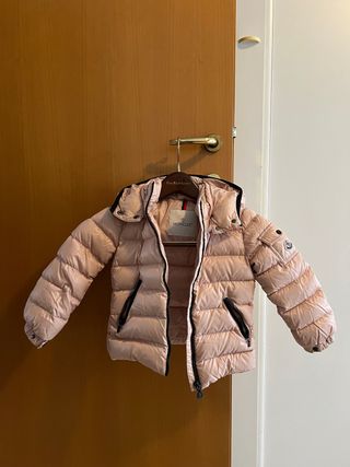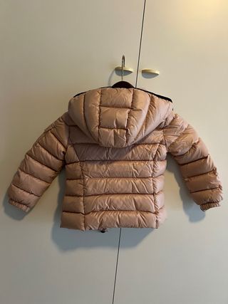 Giacca imbottita Moncler per bambina, colore rosa. Praticamente nuova - Cappuccio con dettagli neri. - Zip frontale. - Tasche laterali con zip nere. - Logo Moncler sulla manica sinistra.