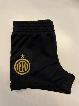 Pantaloncini da calcio dell'Inter, Nuovo, mai indossato. Taglia 3-6 mesi. - Colore nero con dettagli oro. - Logo ufficiale Inter sul lato. - Elastico in vita.