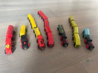 trenini in blocco tutti il legno per gicoare nellr piste Brio e Ikea. 21 pezzi