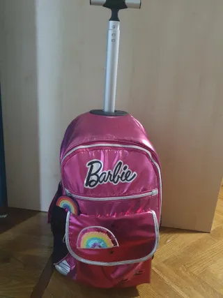 Zaino trolley rosa con il logo Barbie e dettagli arcobaleno. - Design brillante. - Manico estensibile. - Tasca frontale con zip.