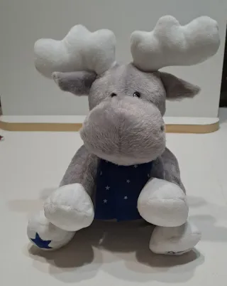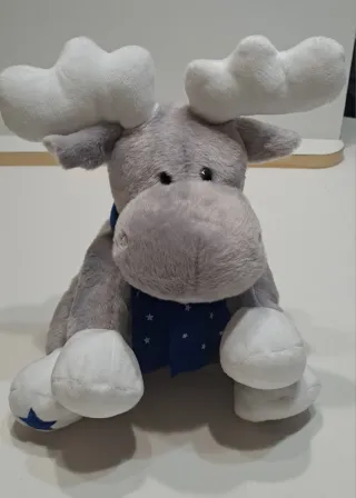 Morbido peluche a forma di renna, perfetto per un regalo o per arredare. Presente una tasca sul retro. Altezza da seduto 23 cm