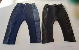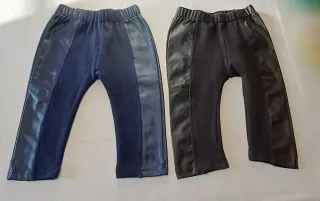 Due paia di pantaloni metà pelle metà felpato, taglia 18 mesi. Un paio è blu scuro e l'altro nero. - Vita elasticizzata.