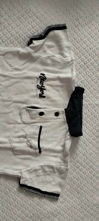 Polo per bambino con dettagli a contrasto. - Colore bianco - Scritta New York ricamata - Taschino frontale - Collo e maniche con bordino nero
