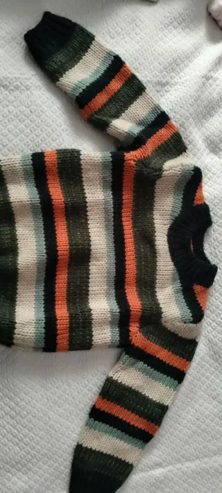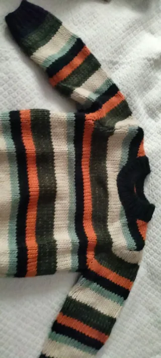 Maglioncino a righe colorate per bambino mai usato. - Maniche lunghe. - Girocollo. - Tessuto a maglia.