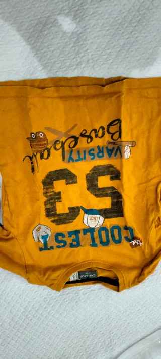 Maglietta a maniche lunghe per neonato, color senape. - Stampa Varsity Baseball 53 sul davanti. - Grafica con gufo e dettagli a tema baseball. - Orlo a costine.