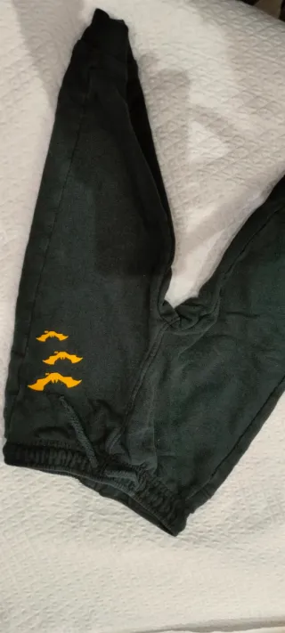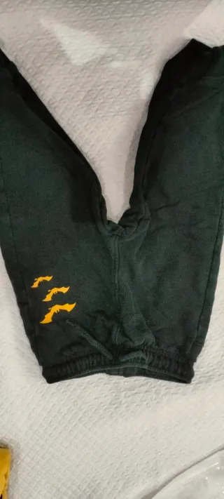 Pantaloni da bambino a tema Batman, di colore verde scuro. - Logo giallo a forma di artigli sul lato sinistro. - Elastico in vita e alle caviglie.