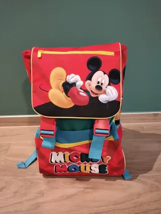Zaino scuola per bambini con stampa di Topolino. - Stampa di Topolino sorridente sul davanti. - Scritta MICKEY MOUSE in stile colorato. - Bretelle regolabili blu con fibbie rosse. - Zip gialla per l'apertura principale. Lo zaino è praticamente nuovo.