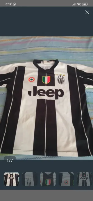 Maglietta sportiva Juventus, taglia 10 anni, dedicata a Pogba. - Colore bianco e nero a strisce. - Logo Jeep sul davanti. - Stemma della squadra con scudetto italiano.