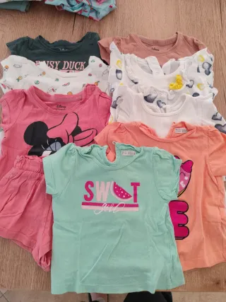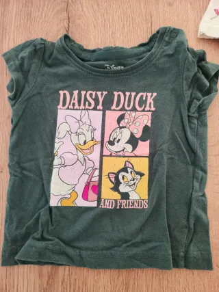 Lotto di quattro magliette a mezza manica per neonata, taglie miste. - Maglietta Disney con Minnie. - Maglietta Disney Daisy Duck. - Maglietta rosa con stampa. - Maglietta arancione con stampa LOVE.