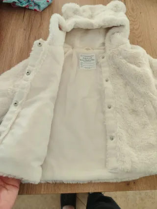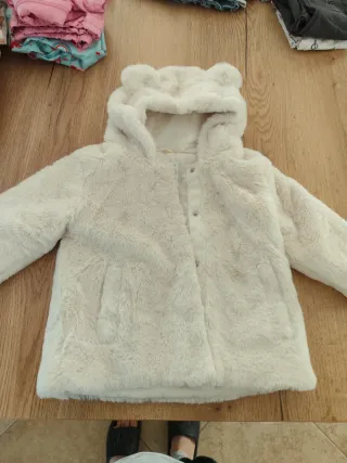 Morbido pellicciotto bianco per bambina, perfetto per le giornate più fredde. Ha un simpatico cappuccio con orecchiette. - Materiale: pelliccia sintetica. - Colore: bianco. - Dettagli: cappuccio con orecchie.