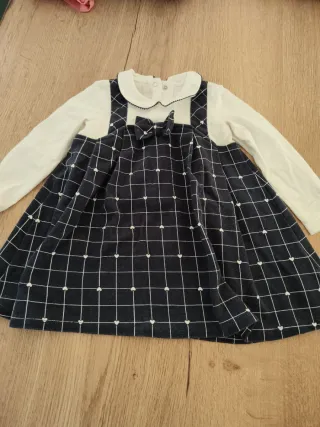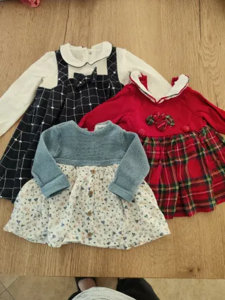 Set di vestiti corti per neonata in taglie miste. Ideali per diverse occasioni. - Vestito a quadri rosso con dettagli a tema. - Vestito blu a quadri con fiocco. - Vestito con maglia azzurra e fantasia floreale.