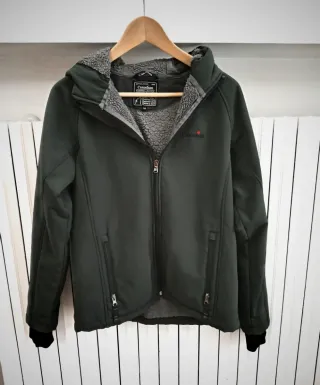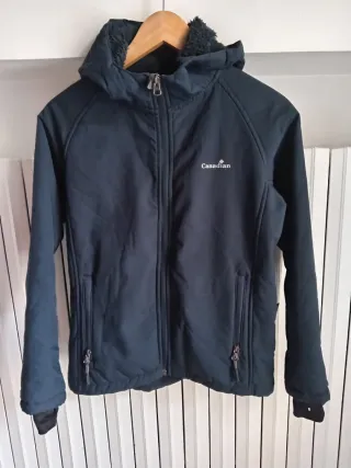 Giacca blu marca Canadian per bambina di 10 anni. È un tessuto softshell, resistente all'acqua, e altamente resistente al vento. Con cappuccio foderato in pile, chiusura con cerniera frontale e tasche con cerniera, come è tipico nelle giacche tecniche. In buone condizioni. Misure: Lunghezza totale: 58 cm Misura da ascella ad ascella: 46 cm Lunghezze delle maniche: 50 cm Spalle: 38 cm