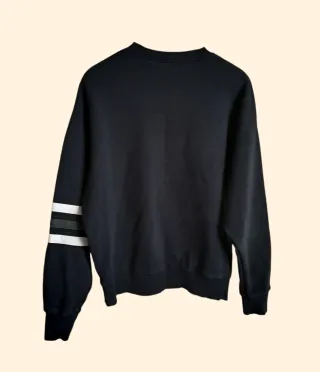 Felpa girocollo blu scuro con stampa Portland sul davanti e dettagli a righe sulle maniche. In cotone. Marca Subdued - Logo Portland con scritta Since 1978. - Righe a contrasto sulle maniche. - Polsini e fondo a costine. Descritta come una felpa in stile universitario. Taglia XS ma veste M. In ottime condizioni. Lunghezza: 63 cm Misura da ascella ad ascella: 60 cm Lunghezze delle maniche: 55 cm Spalle: 60 cm