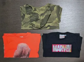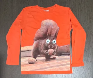 Maglietta a manica lunga per bambino con stampe varie. - Taglia 8, 8/9 e 8/10 anni. - Colore verde militare e marrone. - Colore arancione con occhi dello scoiattolo che si muovono - Colore nero con logo marvel che cambia riportando le.foto di quattro supereroi.