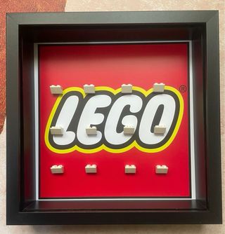Cornice espositiva per minifigure Lego. Ideale per mostrare la tua collezione. - Design moderno con sfondo rosso e logo Lego. - Dotata di supporti per agganciare le minifigure.
