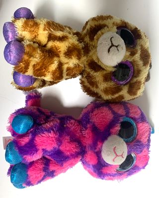 Vendo set di due Peluche Ty “The Beanie Boo’s Collection”. Personaggi: - Safari, giraffa caramello e marrone con occhi viola. - Sky Hight, giraffa rosa e viola con occhi azzurri. Misura: circa 15 centimetri (6 pollici) Targhetta non presente. Condizioni: oggetto usato che non presenta gravi danni o strappi. Tuttavia, questi peluche sono caratterizzati da grandi occhi glitterati che potrebbero presentare qualche graffio. Contiene piccoli pezzi, tutti i pezzi sono visibili in foto. Le foto mostrano le reali condizioni degli oggetti in vendita.