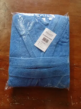 Morbido accappatoio unisex di colore azzurro, perfetto per il relax. - Marca: MAKO - Modello: Accappatoio Capri - Materiale: 100% Cotone - Taglia: M