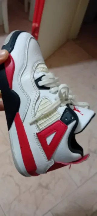 Sneakers bambino, taglia 33. Modello iconico con dettagli rossi e bianchi. - Tomaia in pelle bianca. - Inserti in rete traspirante. - Suola in gomma resistente.