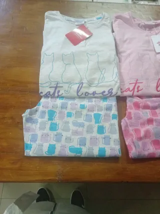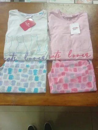 Set di due pigiami in cotone per ragazza, adatti per età 15/16 anni. Presentano una simpatica stampa di gatti. Un pigiama colore grigio e uno rosa , entrambi in cotone , ideale per la primavera Oppure per chi non ama i tessuti pesanti addosso, svendo sottocosto per liberare spazio in negozio, perciò prezzo non modificabile. Disponibile anche taglia 11/12 e 13 /14 - Pigiami in cotone - Stampa a tema gatti - Taglia 15/16 anni