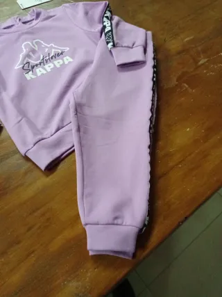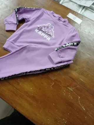 Bellissimo completo Kappa per bambina di 24 mesi, colore lilla. Super trendy 😍 in morbido cotone garzato. - Logo Kappa stampato sul davanti. - Banda con logo Kappa sulle maniche e sui pantaloni. - Realizzata in cotone.