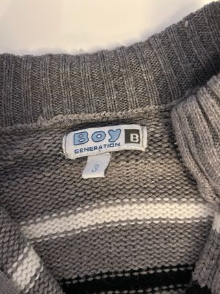 Maglione a tre colori per bambino. - Colori: blu scuro, grigio e giallo ocra. - Girocollo. - Maniche lunghe.