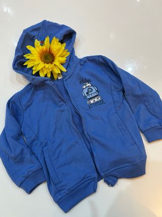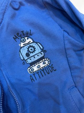 Felpa leggera per bambino, taglia 12-18 mesi. Presenta una stampa di un robot con la scritta Metal Attitude sul petto e il cappuccio. - Colore blu. - Chiusura con zip frontale. - Due tasche laterali. - Cappuccio integrato.