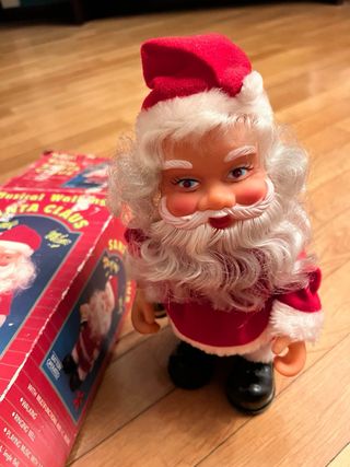 Bambolotto di Babbo Natale che cammina e suona. - Funzionante a batteria. - Cammina. - Suona una campanella. - Riproduce musica con 3 melodie.
