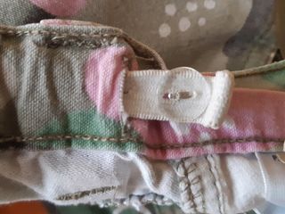 Pantaloni pinocchietto per bimba IANA con una fantasia colorata. - Taglia 5 anni / 110 cm. - Chiusura con zip.