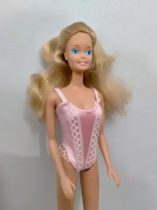 Bellissima Barbie Fun to Dress dell'anno 1988. Baby doll rosa originale con dettagli in pizzo bianco. Capelli biondi lunghi, pettinabili e lucenti. In ottime condizioni.