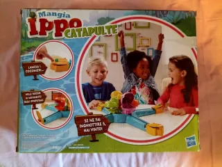 Gioco da tavolo Mangia Ippo Catapulte di Hasbro. - Lancio di cocco con catapulta elettronica. - Adatto dai 4 anni in su. - Richiede assemblaggio da parte di un adulto.