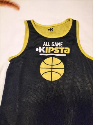 Completo sportivo Kipsta per bambino, ideale per il gioco. - Maglia senza maniche nera con dettagli gialli. - Pantaloncini neri con dettagli gialli. - Logo Kipsta sul pantaloncino. - Stampa ALL GAME KIPSTA sulla maglia.