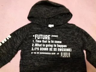Felpa con cappuccio per bambino, taglia 10-11 anni, con stampa FUTURE sul davanti e FUTURE sul braccio. - Stampa FUTURE con definizione e lista. - Scritta FUTURE sul braccio. - Design moderno e casual.