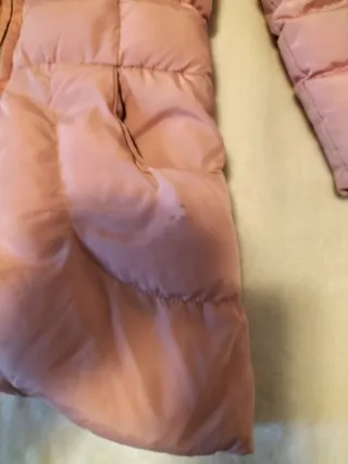 Bellissimo giubbotto rosa per bambina, taglia 5 anni. Piccole macchie poco visibili evidenziate in foto - Design trapuntato. - Cappuccio integrato. - Chiusura con zip frontale. - Tasche laterali.