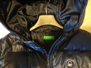 Bellissimo giubbotto Benetton per bambina, taglia 7-8 anni. Perfetto per le giornate più fredde. Piccolo buco riparabile evidenziato in foto - Colore blu scuro. - Imbottito e con cappuccio. - Chiusura con zip. - Tasche laterali con bottoni.