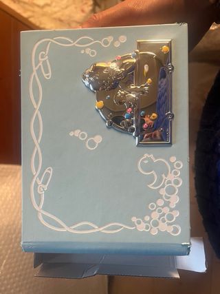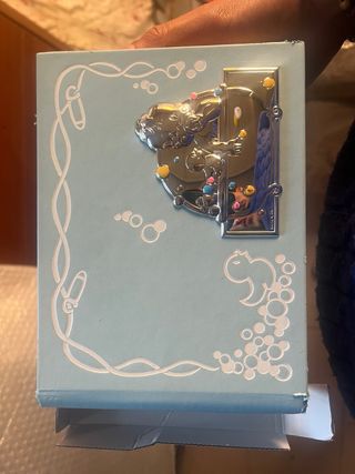 Album per neonato in argento nuvo, completo di scatola originale. - Design con dettagli in rilievo. - Tema con bolle e figure stilizzate. - Scatola inclusa per conservazione o regalo.