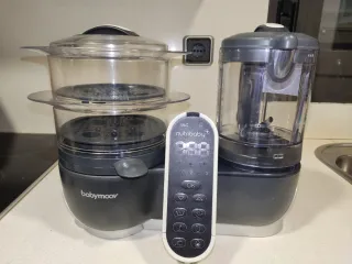 Robot da cucina speciale per alimenti per bambini. Marca BabyMoov Nutribaby (+). Il suo prezzo è dovuto all'aspetto fisico ma funziona perfettamente. I plastici sono usurati per l'uso in lavastoviglie. È stato segnalato che vendono ricambi nel caso si vogliano cambiare. Colore grigio scuro. Dimensioni: 31 (larghezza) x 20 (profondità) x 21 (altezza) cm.