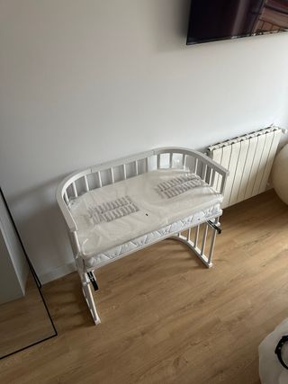 Culla con materasso Babybay Original, regolabile in altezza. È in ottime condizioni, è stato usato pochissimo. È l'unico materasso per culla sul mercato che consente la regolazione continua dell'altezza per tutti i tipi di materassi. La superficie per dormire babybay può essere adattata con precisione al letto dei genitori, senza lasciare spazio, senza gradini, senza oscillazioni, in modo da avere sempre il bambino vicino. Abbiamo un materasso alto con un divano e si adatta perfettamente. Lo vendo perché mio figlio ha 1 anno e ora dorme in una culla. Include: - Culla per neonati originale - Materasso AngelWave. - Due lenzuola con angoli elasticizzati. - Confezione e istruzioni originali.