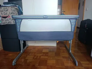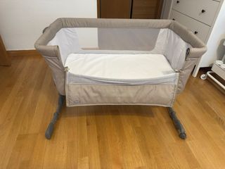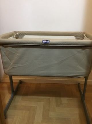 Culla Next to Me Chicco, ideale per i primi mesi del neonato. - Design moderno e funzionale. - Tessuto traspirante per il massimo comfort. - Logo Chicco visibile. Tessuto grigio chiaro Usato pochissimi mesi, pari al nuovo con scatola originale. Regolabile in altezza e con gambe pieghevoli per occupare meno spazio